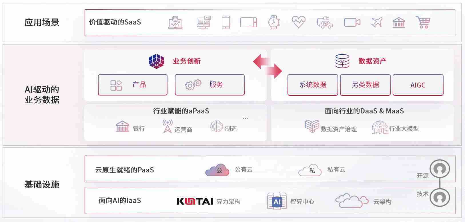 数字时代,,围绕企业数字化转型的关键要素,,,PG数码开创性的提出数云融合战略和技术体系框架,,,着力在云原生、、数字原生、、、、AI原生和信创产业上架构产品和服务能力,,,,为处在不同数字化转型阶段的快消零售、、、汽车、、、金融、、、、医疗、、、、政企、、教育、、、、运营商等行业客户提供泛在的敏捷IT能力和融合的数据驱动能力,,构建跨界融合创新的数字业务场景和新业务模式,,,,助力企业级客户建立面向未来的核心能力和竞争优势,,,全面推动社会的数字化、、、智能化转型升级。。